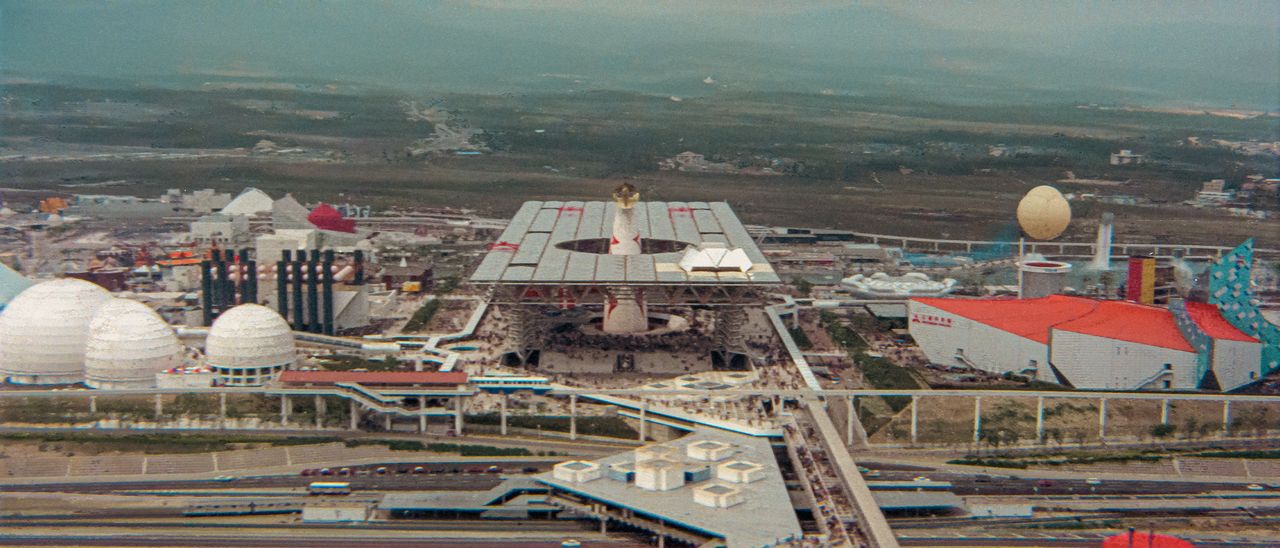 ãäžå远跡ãã«ã¯70幎倧éªäžåã®è±¡åŸŽã§ãã倪éœã®å¡ãã¯ãããã¡ã€ã³äŒå Žããããªãªã³ã现éšãŸã§æ ãåºãããŠãããäŒå Žå ã§åæ ç»ãæ®åœ±ããããšã¯èªããããŠããªãã£ãããã補äœé£ã¯ãããã¥ã¡ã³ã¿ãªãŒæ ç»ãæ®åœ±ããããšããåç®ã§èš±å¯ãåããâã²ãªã©æ®åœ±âãæ¢è¡ããã