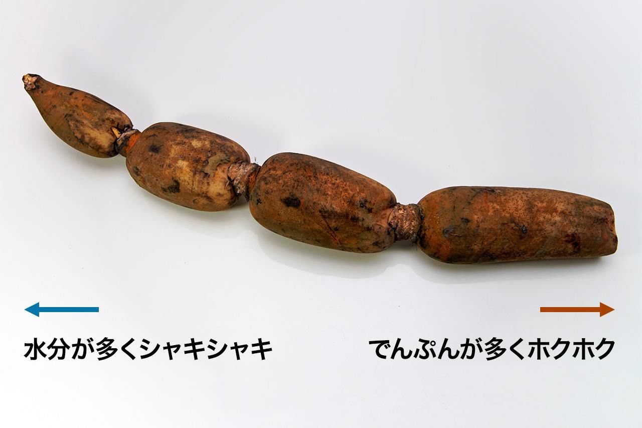 ã¹ãŒããŒãªã©ã§ã¯äœ¿ãåããµã€ãºã«ã«ããããŠè²©å£²ãããŠããããšãå€ãããããšããšã¯ããã€ãã®ç¯ãé£ãªã£ãç¶æ ã§åç©«ããããæ¯èŒç倧ããªãµã€ãºã®ã芪ãã¯ç¹ç¶ã倪ãç²ãã匷ãã®ã§ãç ®ç©ãããäžããæçã«æé©ãçãäžã®ãåãã¯ç ®ãã®ãæãç©ãçãç©ãšæ±çšçã«äœ¿ãããèœã«è¿ããå«ãã¯æé·éäžã§ãç¹ç¶ã现ãã®ã§ãã·ã£ãããšãã軜ãããªæ¯ãããããããŽãããµã©ããé ¢ã®ç©ãªã©é£æã楜ããæçã«åããŠããã