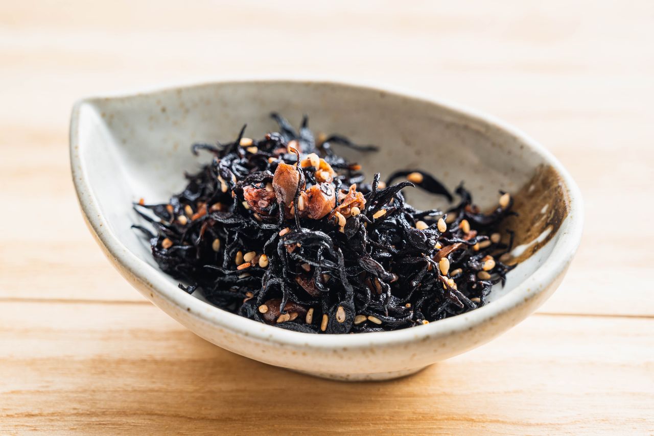 ひじきと刻んだ梅干しを煮て、白ごまを振った滋味あふれる常備菜。炒(い)って水分を飛ばした「ふりかけ」も市販される、ポピュラーな組み合わせ。