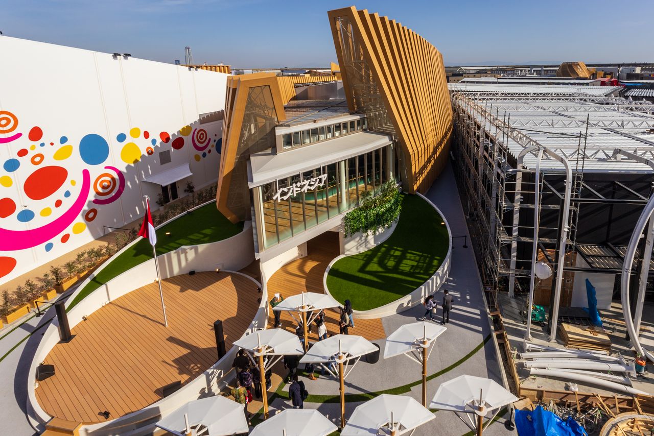 世界最多の1万7000以上の島で構成されるインドネシアは、「船」をモチーフにした外観。「2045年の先進国入り」という国民の夢を載せて前進する姿と重なる。