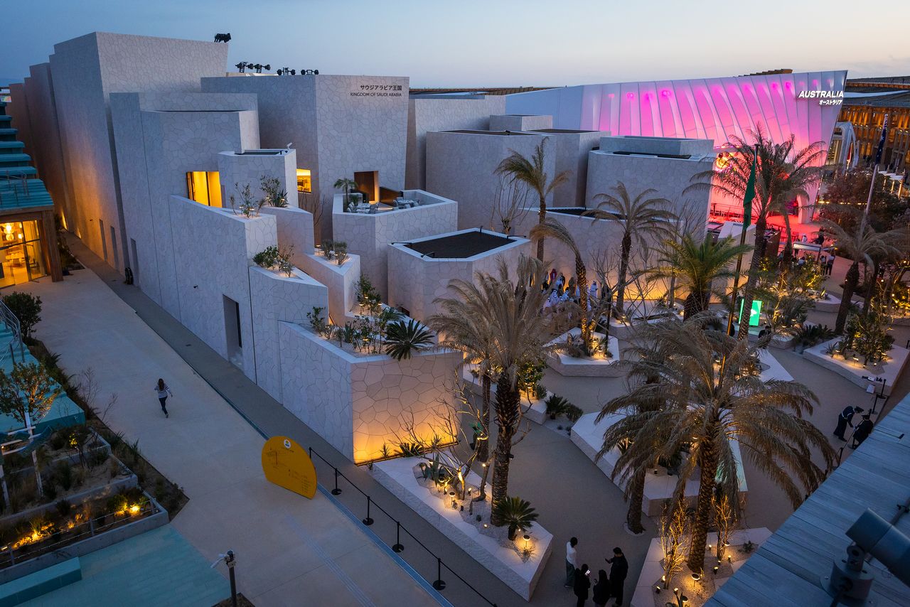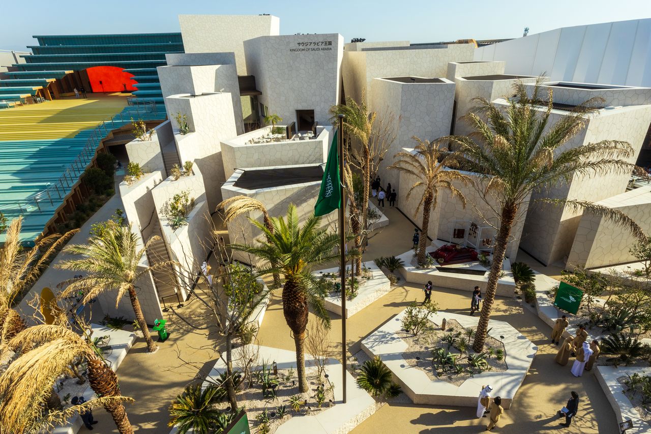 次回2030年のリヤド万博の開催国であるサウジアラビアは、伝統的な都市構造物を再現したド迫力のパビリオン。曲がりくねった路地を歩いた先にある中庭では、毎日、音楽や演劇のパフォーマンス、ダンスや語りなど700以上のイベントが予定されている。