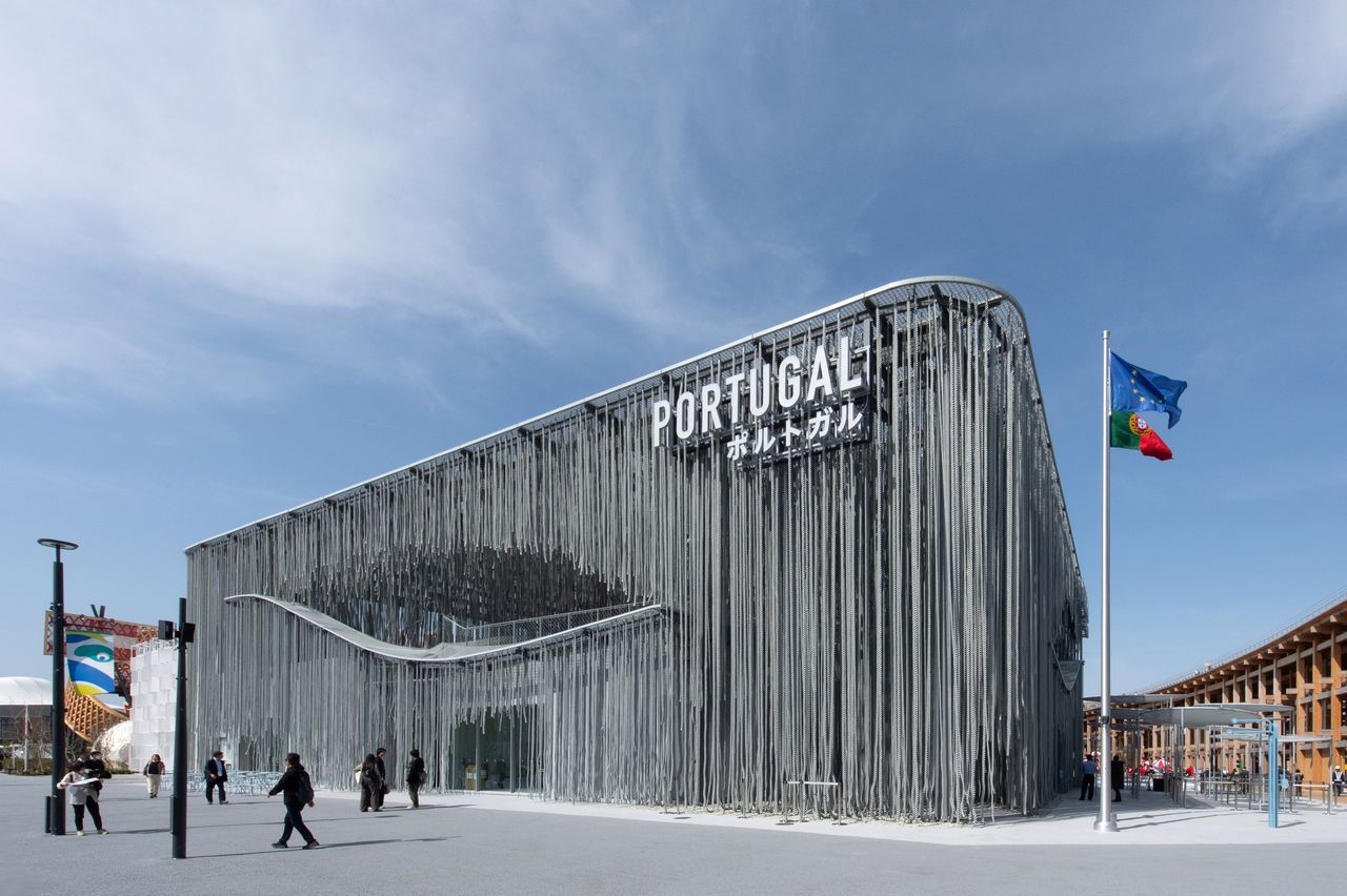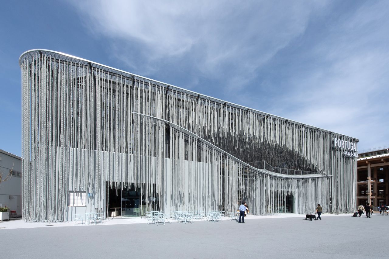テーマは「海洋:青の対話」。世界的建築家・隈研吾(くま・けんご)さんのデザインで、館内外に無数のロープをつるして海の色や波を表現する。