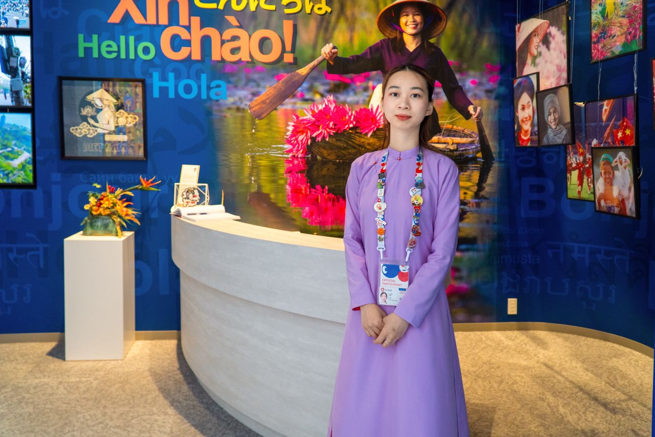 ベトナム戦争終結から50年目の4月30日、満を持してオープン。館内ではアオザイ姿の女性が出迎え、天井には伝統的な絵画が描かれたランタンがつるされる。さらにプロジェクションマッピングや3D技術も駆使して、民族衣装や工芸品など豊かな文化をアピールする。