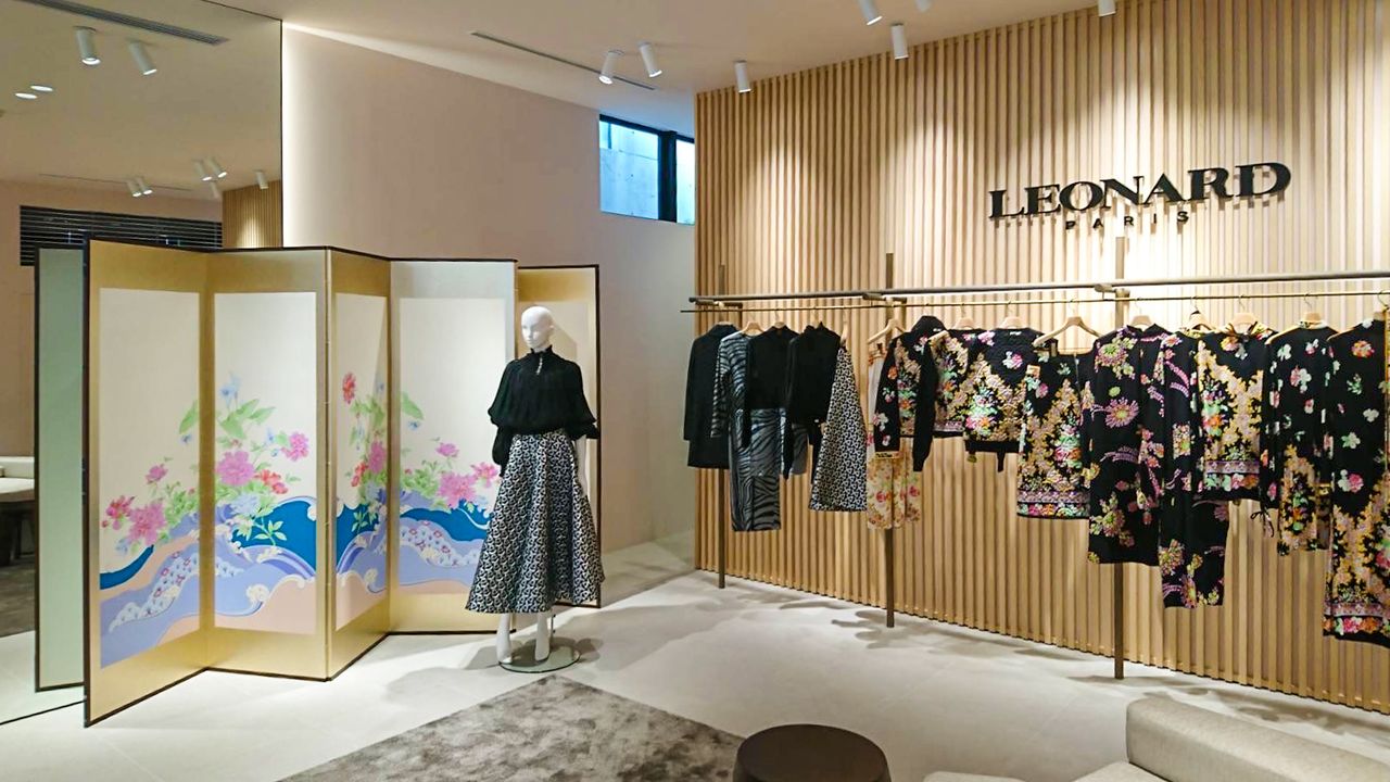 ファッションブランド向けの特注品。金箔縁の豪華な屏風がパーティション代わりに(片岡屏風店提供)