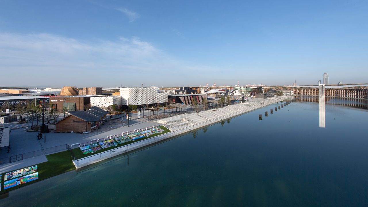 ã€ãã«éå¹ãã倧éªã»é¢è¥¿äžåã倢掲ïŒå€§éªåžæ€è±åºïŒã®äŒå Žå šäœã¯155ãã¯ã¿ãŒã«ããããæ±äº¬ããŒã çŽ33ååã«çžåœãããäžåã®ã·ã³ãã«ã»å€§å±æ ¹ãªã³ã°ãEXPOããŒã«ãšãã£ãäž»èŠæœèšã8ã€ã®ã·ã°ããã£ãŒãããªãªã³ãç¬èªèšèšã®æµ·å€ãããªãªã³42æ£ã«å ããååœã®å±ç€ºããŒã¹ãå ¥ãå ±åé€šãæ°éãããªãªã³ãªã©ãè»ãé£ããã